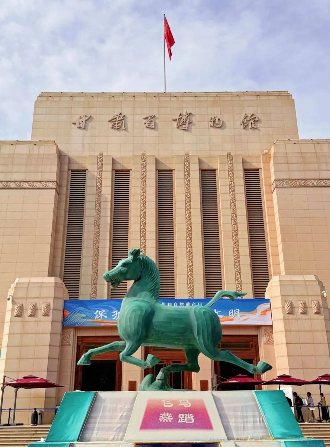 甘肃省博物馆,位于中国甘肃省兰州市七里河区西津西路3号,集文物征集、收藏、研究、展示、教育、服务于一体,是甘肃省最大的综合性博物馆,是甘肃省宣传、教育、文化、旅游、外事活动的中心阵地和重要场所。甘肃省博物馆,前身是1939年在兰州城贤后街25号及西城巷14号的两处民房内成立的甘肃科学教育馆,1956年更名为甘肃省博物馆,1958年迁入兰州市七里河区西津西路3号。后经扩建,现甘肃省博物馆发展成了一座集办公区、库房区、展览区、服务区为一体的智能化建筑,占地面积为72000平方米,建筑面积为43320平方米,整个建筑为典型的苏欧风格,平面呈“山”字型,中楼有五层,两翼有三层。基本陈列包括《甘肃丝绸之路文明展》《红色甘肃——走向一九四九展》《甘肃古生物化石展》《甘肃彩陶展》《庄严妙相——甘肃佛教艺术展》。截至2021年底,甘肃省博物馆藏品有8万余件(组),类别涉及古生物化石、陶器、铜器、瓷器、玉器、木雕、丝织品、绘画、木简、金器、自然标本等,汇集了甘肃从远古时期到近现代的大量文化珍宝,其中国宝级文物有铜奔马、驿使图壁画砖、人头形器口彩陶瓶、鼎形铜行灯、三彩凤首壶等16件。2012年底,甘肃省博物馆荣升为国家一级博物馆。2024年6月24日,甘肃省博物馆获评微博文化之夜“微博年度文化科技创新博物馆”。