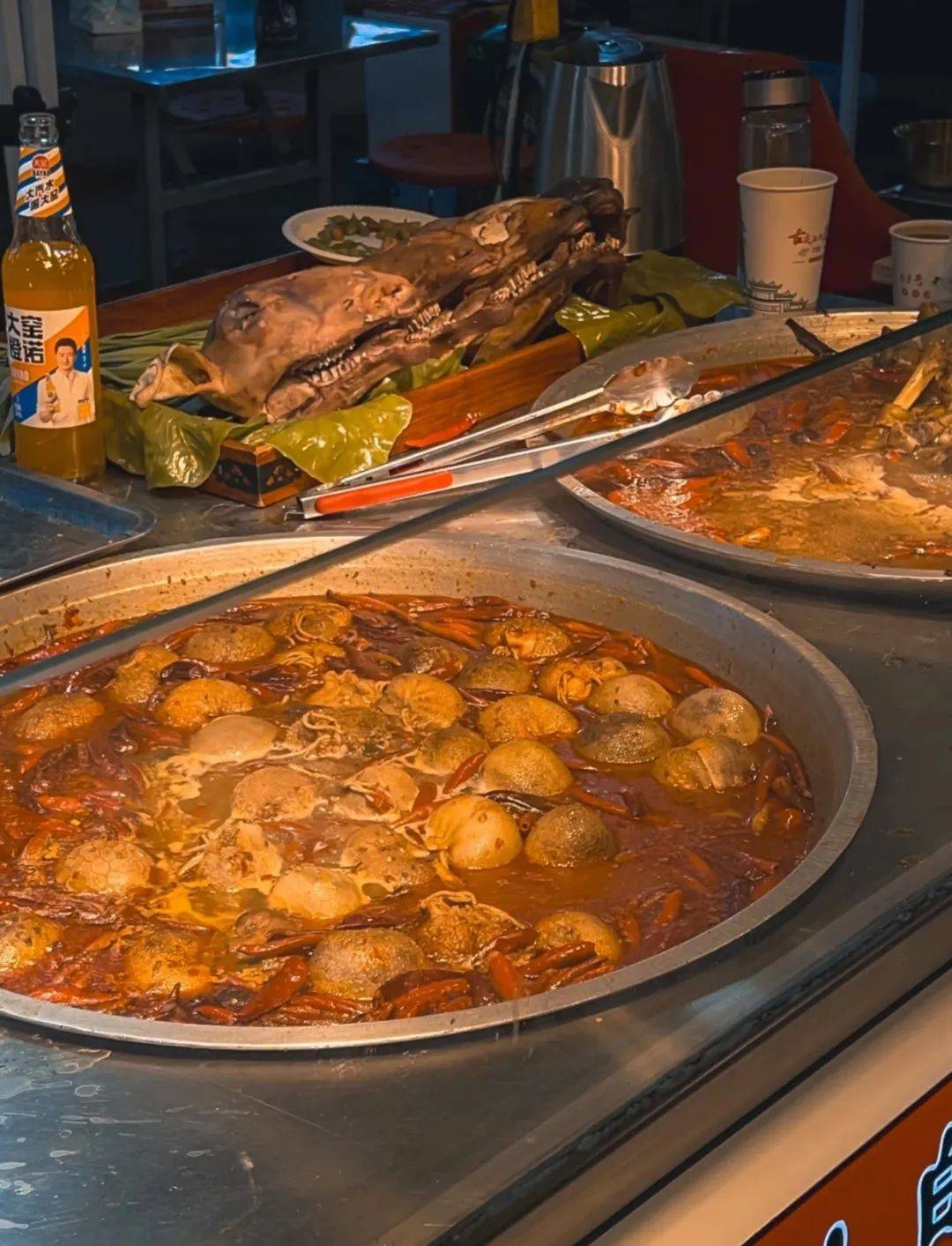 筏子面肠:严格来说,筏子面肠原产于临夏,但在正宁路夜市也能吃到。筏子是在肠子里面灌的羊杂,里面全是肉,看起来鼓鼓囊囊的,有点像竹筏;面肠里面灌的是豆面和玉米面,颜色黄黄的,撒点辣椒面和葱花就可以吃,味道香浓,非常过瘾。