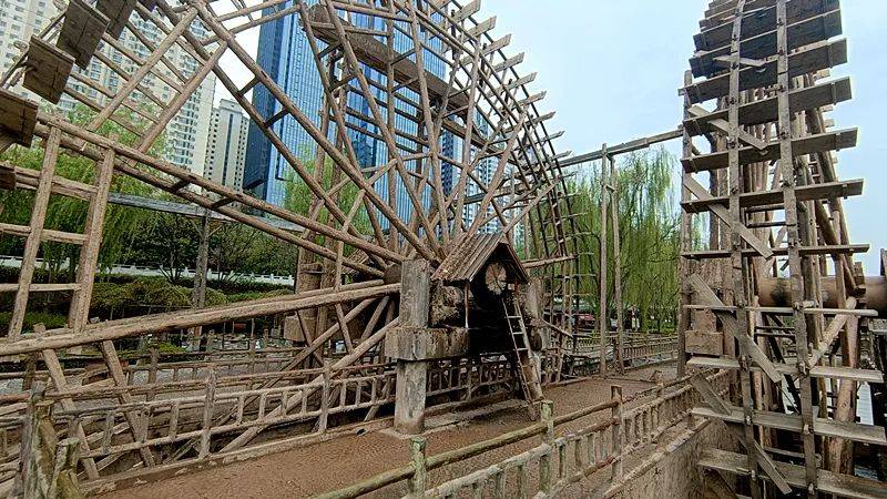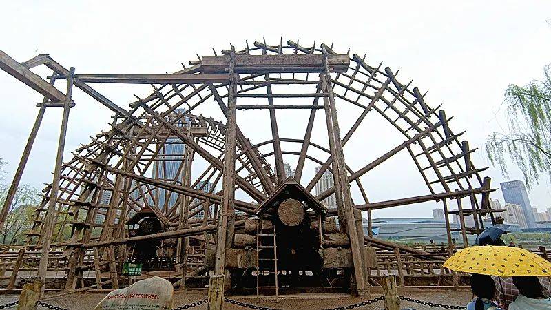 中山桥南面不远处则是兰州水车园,它也是百里黄河风情线上最具兰州地方特色的景点之一。兰州水车,又叫“天车”、“翻车”、“灌车”、“老虎车”,园内由双轮水车、围堰、水磨坊服务室和游乐区组成,立于黄河南岸,旺水季利用自然水流助推转动。