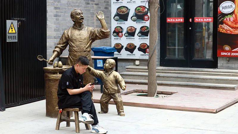 漫步老街,西北民俗的韵味油然而生,感觉到处飘荡着美食的味道直往人鼻孔里钻,让人忍不住地不停咽口水;时而可以在街边或街角看到体现本地风情的雕塑,形象活灵活现,栩栩如生;或许是去的时候是阴天,老街没有想像中那么热闹,显得游客稀少,门可罗雀。