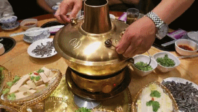 暖心细节:以铜锅为器具,底部炭火熊熊燃烧,锅中食材丰富多样,种树归来吃一锅,驱寒又补充蛋白质,尤其推荐团队围坐分享。
