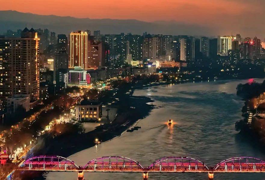 兰州黄河两岸灯火阑珊
